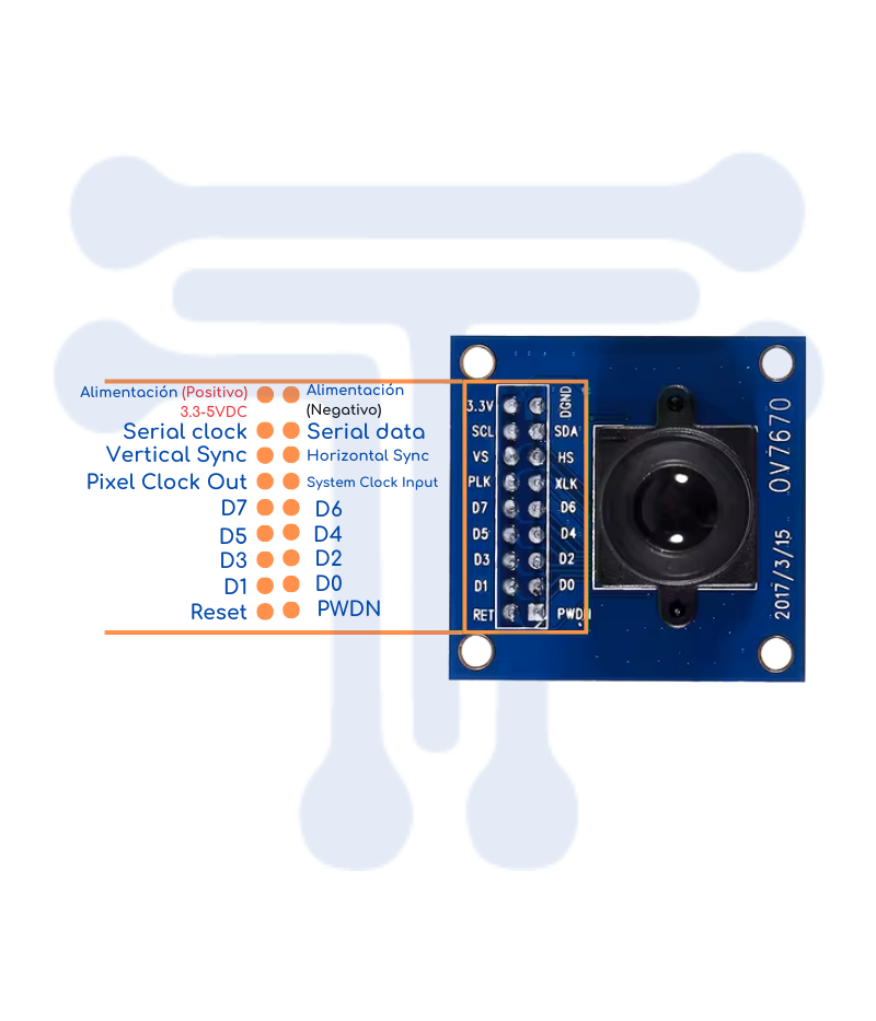 - Interfaz SCCB estándar, también compatible con la interfaz I2C