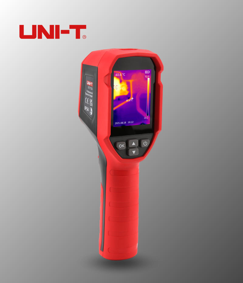 La UTi-712S es una cámara termográfica económica y muy recomendable, con un acabado de alta calidad. Entre sus características especiales se incluyen: compensación de temperatura (que permite lecturas más precisas en diferentes entornos de temperatura), puntero láser y mayor duración de la batería (más de 8 horas).