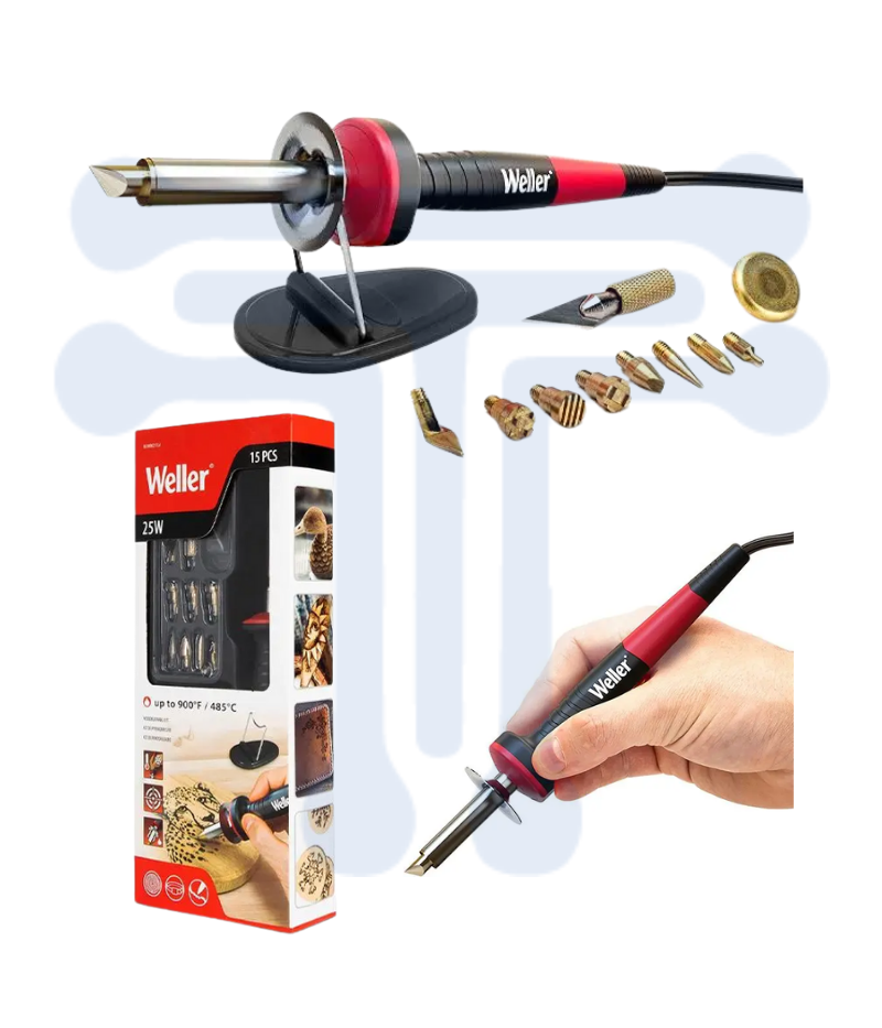 Kit De Pirograbado de 25W Welller, de 15 piezas para proyectos de pirograbado de Weller fomenta la creatividad y aporta todo lo necesario para que emprenda su camino como aficionado al pirograbado.