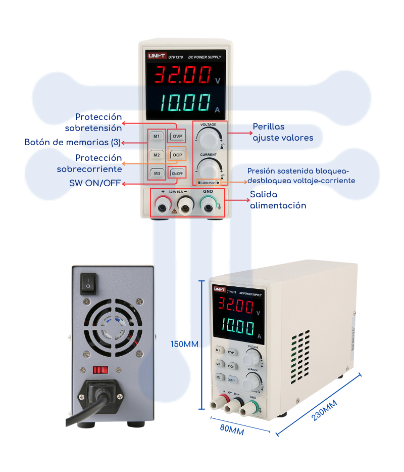 • Rango de voltaje de salida: 0 – 32V
