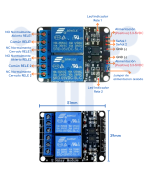Modulo  de rele de  2 canales para ser controlados de forma remota, es ideal para controlar dispositivos en el hogar o industria. Cada canal es controlado por una entrada TTL, la cual puede ser controlada fácilmente por una placa Arduino o microcontrolador.