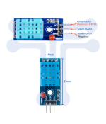 Sensor digital de temperatura y humedad relativa que integra un sensor capacitivo de humedad y un termistor para medir el aire circundante, y muestra los datos mediante una señal digital en el pin de datos.