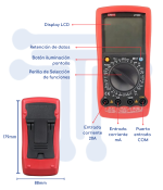 - Resistencia (Ω): 200Ω/2kΩ/200kΩ/2MΩ/20MΩ