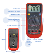 - Corriente AC (A): 20mA/ 200mA/ 10A
