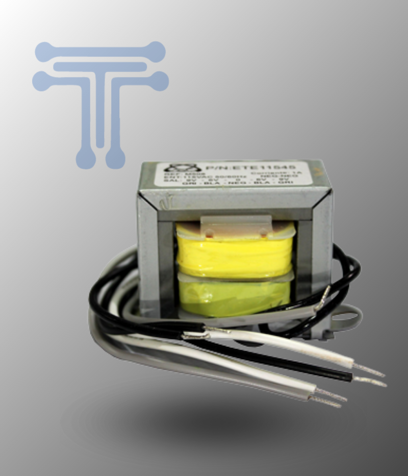 Entrada: 115 VAC Voltaje de salida secundario: (12-12) Potencia: 1A 12VA Dimensiones largo x ancho x alto (cm): 8,1 x 4,4 x 5,1 Distancia entre perforaciones de sujeción en cm: 7,1