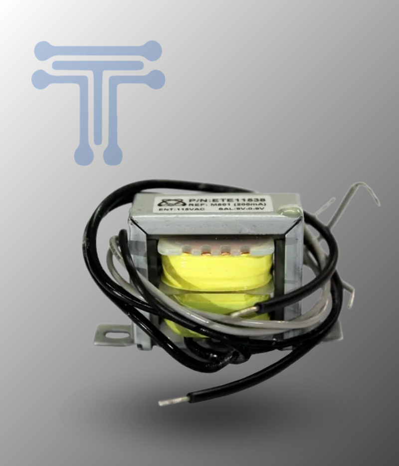 Entrada: 115 VAC Voltaje de salida secundario: (9-9) Potencia: 200mA 1,8VA Dimensiones largo x ancho x alto (cm): 5,5 x 3,2 x 3,2 Distancia entre perforaciones de sujeción en cm: 4,5